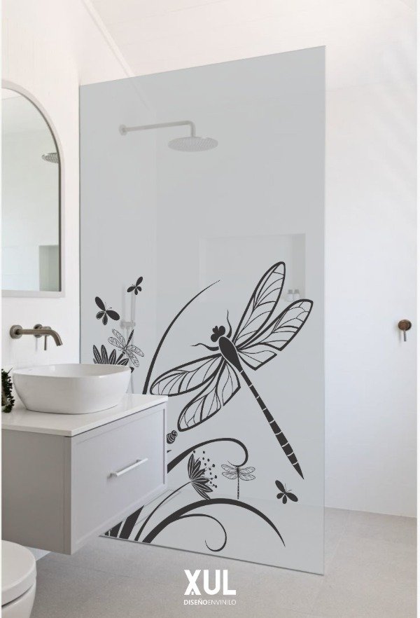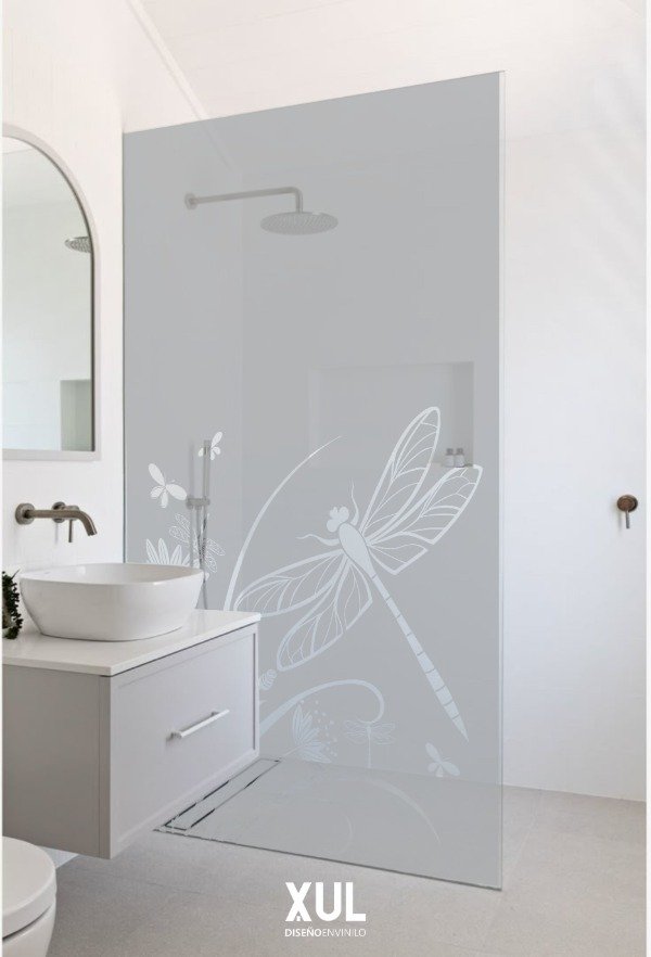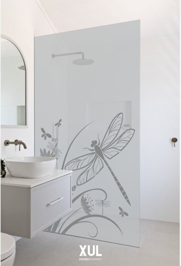 Podes elegir diseños calados, es decir que se vea el vidrio y te permita el ingreso de luz directa o podes elegir diseños montados, es decir, el dibujo que elijas se hace en el color que desees y luego se pega directamente sobre la base de vinilo esmerilado pleno.
