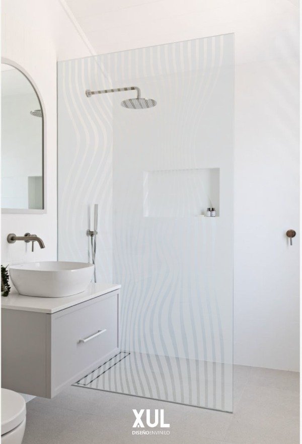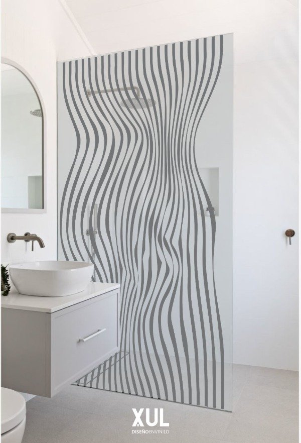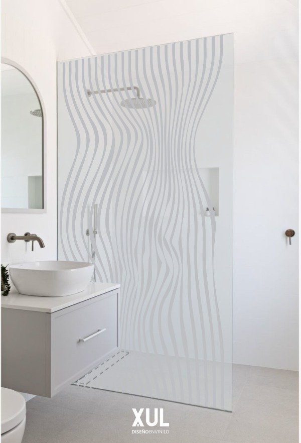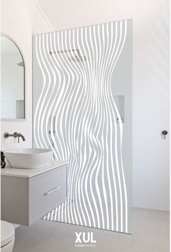 Podes elegir diseños calados, es decir que se vea el vidrio y te permita el ingreso de luz directa o podes elegir diseños montados, es decir, el dibujo que elijas se hace en el color que desees y luego se pega directamente sobre la base de vinilo esmerilado pleno.